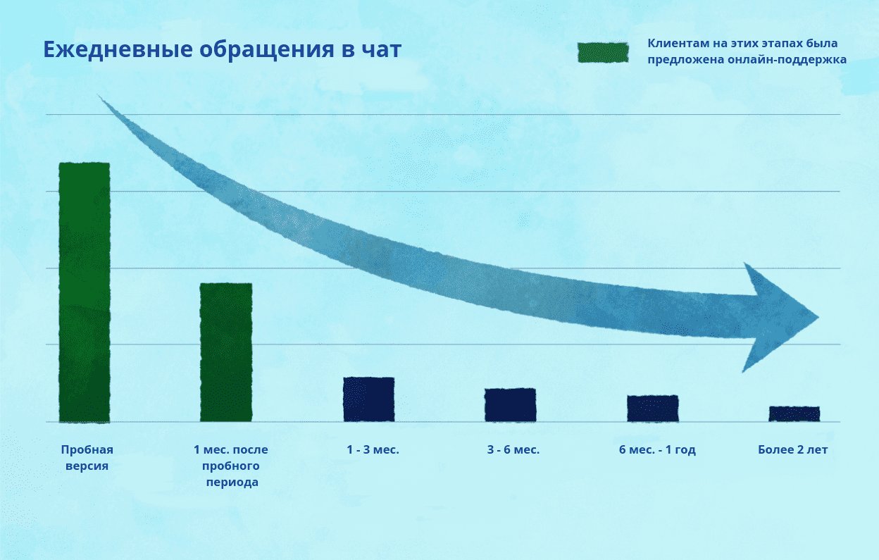 Все же было интересно, какое влияние окажет поддержка в режиме реального времени на бизнес и клиентов. Исследователи сосредоточились на следующих этапах: регистрация, тест пробной версии, начальные этапы пользования сервиса. Это этапы, когда клиенты больше всего нуждаются в поддержке.