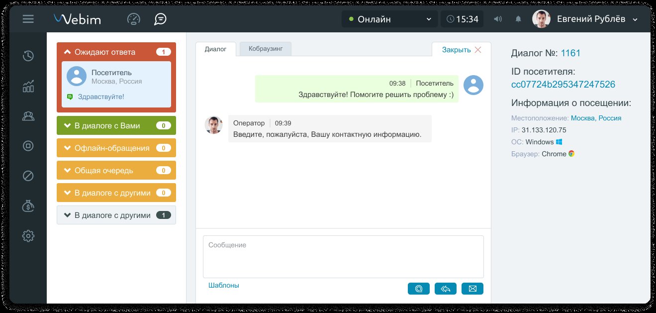 - Системные сообщения теперь могут отправляться и в Каналах общения. Например, удерживающие сообщения, когда оператор какое-то время не отвечает на сообщение посетителя, или сообщения о назначении чата на оператора.