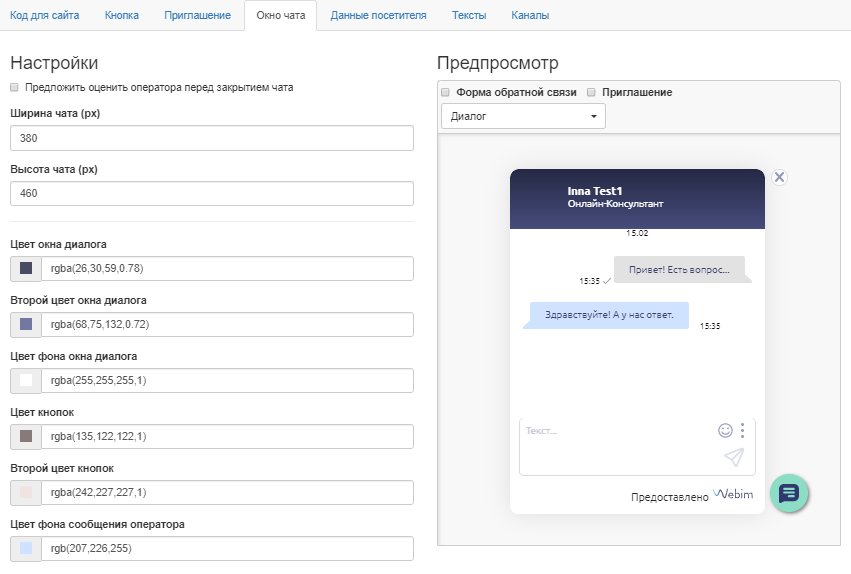 Платформа для онлайн-консультирования Webim предоставляет своим клиентам возможность настраивать интерфейс окна диалогов и приглашений, а также дизайн кнопки в соответствии с фирменным стилем бренда. В разделах «Кнопка» и «Окно чата» можно задать размер чата, расположение кнопки на экране и, конечно же, выбрать необходимые цвета:
