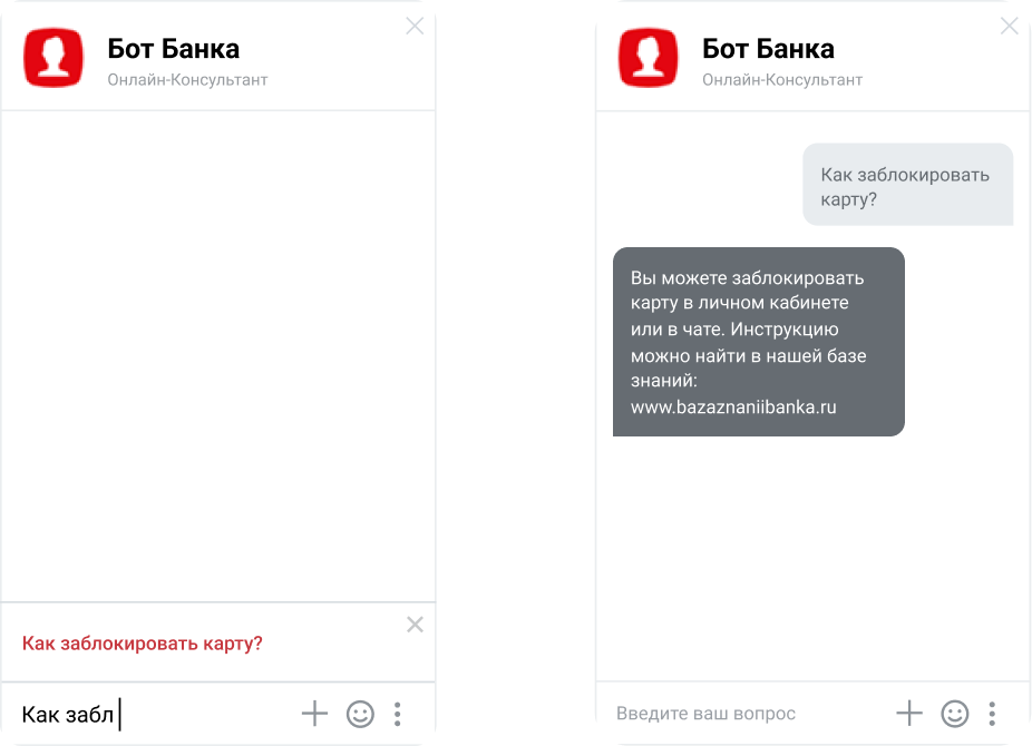 Пользователь выбирает подходящую ему формулировку, а бот-суфлёр присылает в чат готовый ответ. Если ответ бота не устраивает пользователя, диалог с ним поступает к оператору.