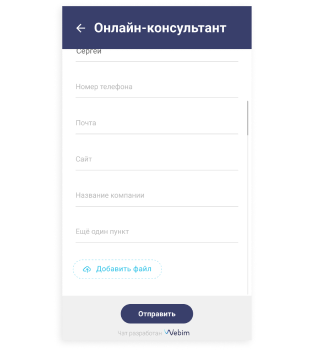 В вашем персональном разделе на платформе Webim вы найдете все необходимые средства для того, чтобы настроить форму обратной связи. Вы сможете определить, какие поля будут присутствовать в форме, настроить ее дизайн и задать условия, при которых форма будет активироваться на сайте.