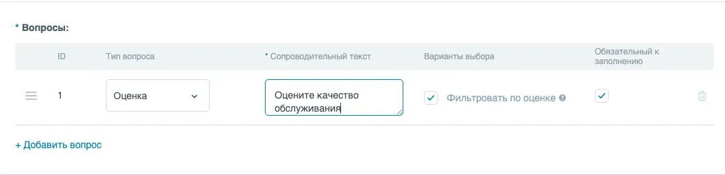 Поставьте галочку в поле Обязательный к заполнению, если хотите сделать конкретный вопрос обязательным к заполнению.
