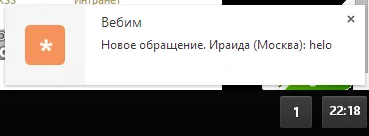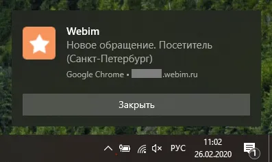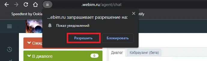 Первый раз браузер Google Chrome запросит разрешения показывать оповещения (уведомления) для сервиса Webim: