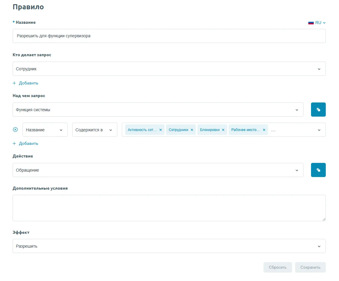 Данное правило открывает доступ к созданию запросов на бекенд сервер с целью получения данных статистики, конфигураций отчетов, конфигураций метрик и т.п. Опционально выбирается к какой из страниц статистики откроется доступ.