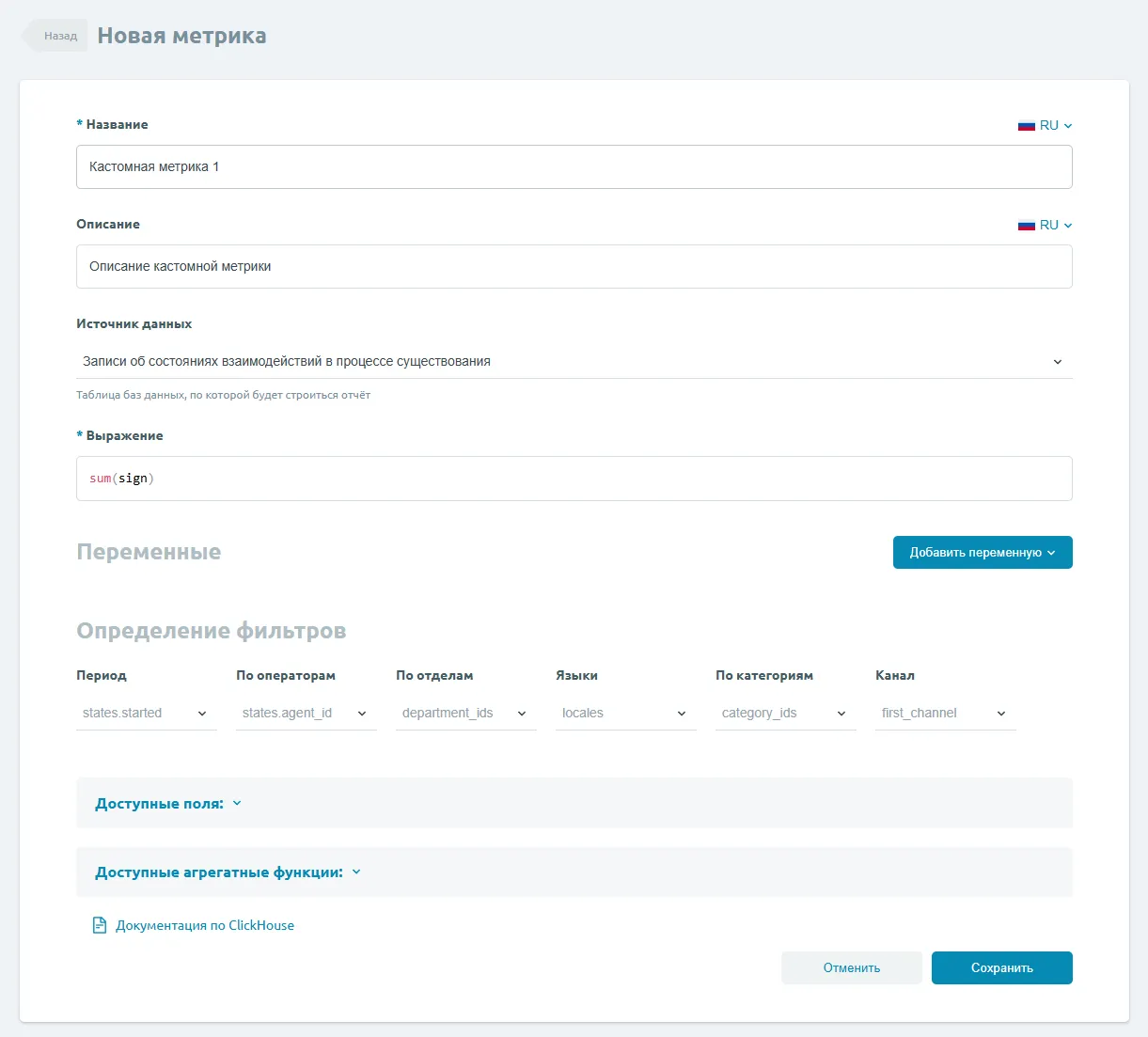 Для того, чтобы создать собственную метрику, вам нужно заполнить следующие поля: