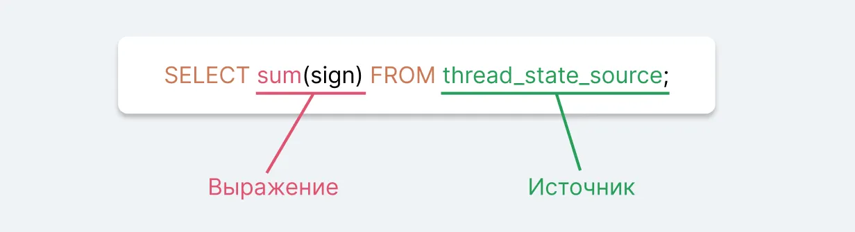 Мы видим источник данных thread_state_source, значит запрос будет направлен в таблицу, содержащую записи (строки), в которых отображено изменение состояний чатов. В данном случае на каждое состояние приходится по строке, в которой присутствуют колонки с названием состояния, его временные границы и т.п.