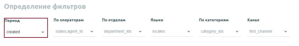 Данное действие производится в секции Определение фильтров, в плейсхолдерах селекторов выводятся колонки, по которым стандартно происходит фильтрация.