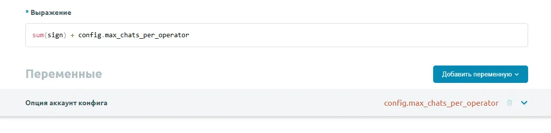 max_chats_per_operator. Она, как и следует из названия, определяет максимальное количество чатов на оператора. В случае, если Вы хотели бы видеть в своём Редакторе метрик дополнительные опции account config, обратитесь в техническую поддержку.