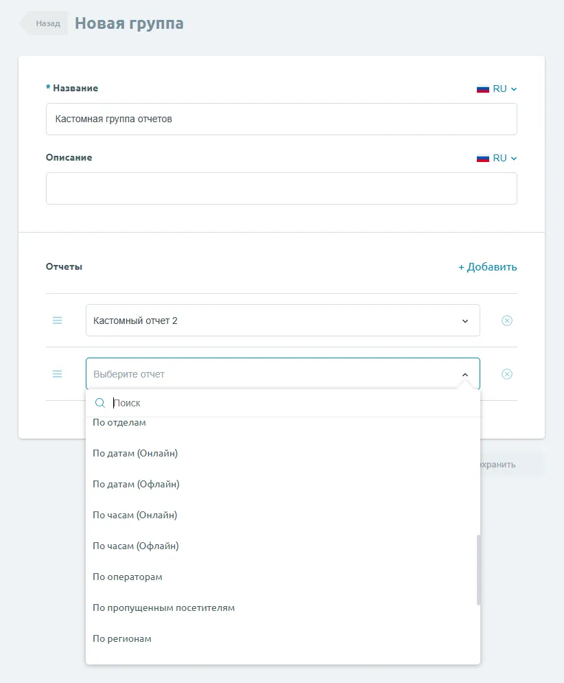Редактор групп отчетов Конфигурация групп - одна из самых простых операций во всем конструкторе. Редактор групп отчетов Отчеты выбираются из списка, каждый отчет можно добавить только один раз. Присутствует возможность изменения порядка отчетов в группе. Была ли эта статья полезна? Спасибо за отзыв! Спасибо за отзыв!
