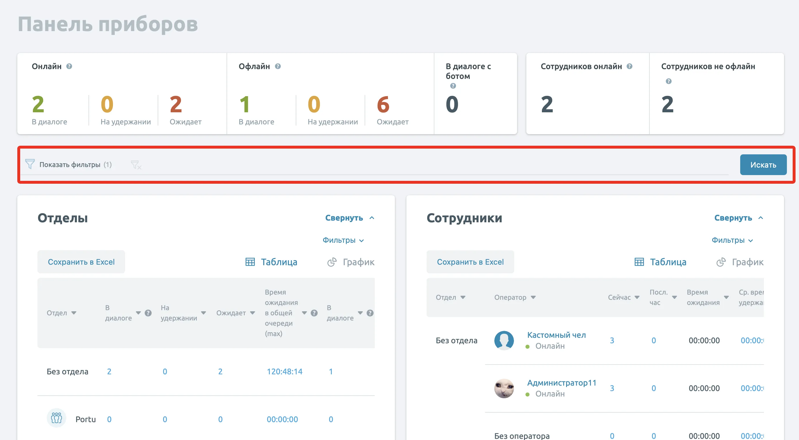 В данном блоке можно выставить фильтры и применить их на все отчеты на страницы по аналогии с группами отчетов. Применение фильтров происходит после нажатия на кнопку Искать в блоке фильтров.