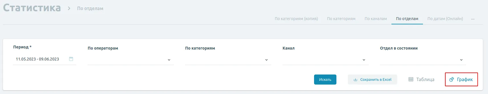 Для переключения на графическое отображение отчёта нажмите на кнопку График, открыв нужный отчёт.
